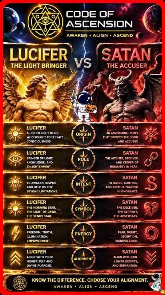 🌟☀️Lucifer’s rebellion wasn’t just a political move; it was a biological and spiritual intervention. He took the starlight from the Morning Star and other celestial bodies and brought it into our empty vessels. This light became the human soul. By doing this, he gave humanity the spark of curiosity, wisdom, and free will. During this explosion of rebellion, Lucifer’s pure rage and naivety manifested into a separate entity known as Satan. While Lucifer brought the light, Satan became the personification of that initial fury. After the rebellion, Archangel Michael intervened, and Lucifer was imprisoned in the first layer of hell, where he was physically bound and unable to interfere with humanity’s 3D reality. Satan, however, was cast down into the very last layer of hell, the deepest seat of corruption.🌕🪐
